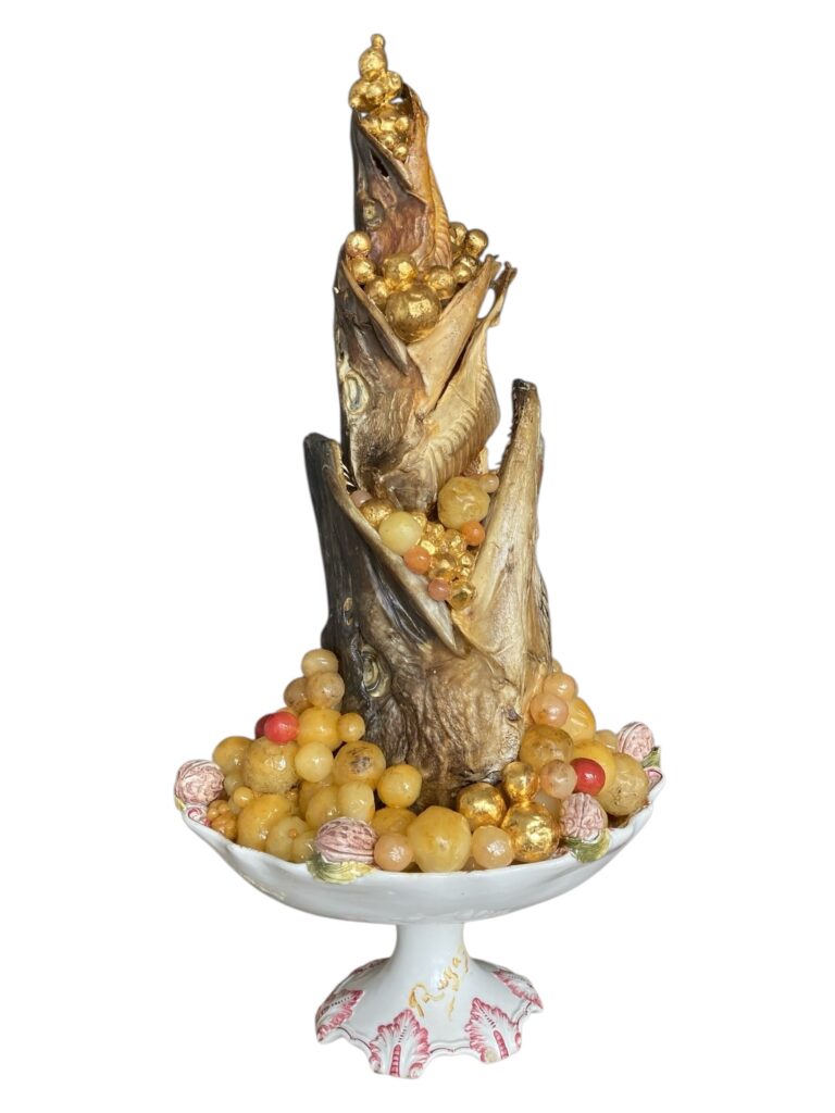 Ceramics, taxidermy, wax, resin, 24 karat gold, oil paint