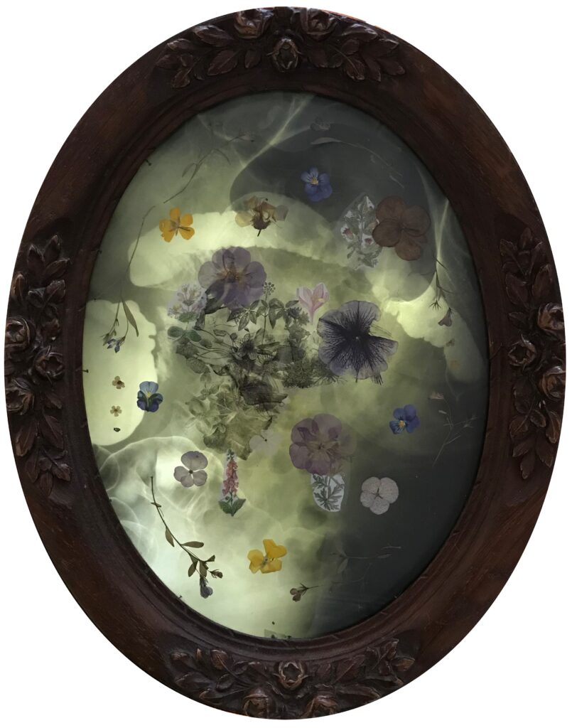 MEMORIES… MEMORIES…Rayastre2023Light object with dried flowers, water transferred etchings, radiograph, in antique frame48 – 38 – 10 cm18,9 – 15 – 3,9 inches8,000 euro Mogelijk gemaakt door
